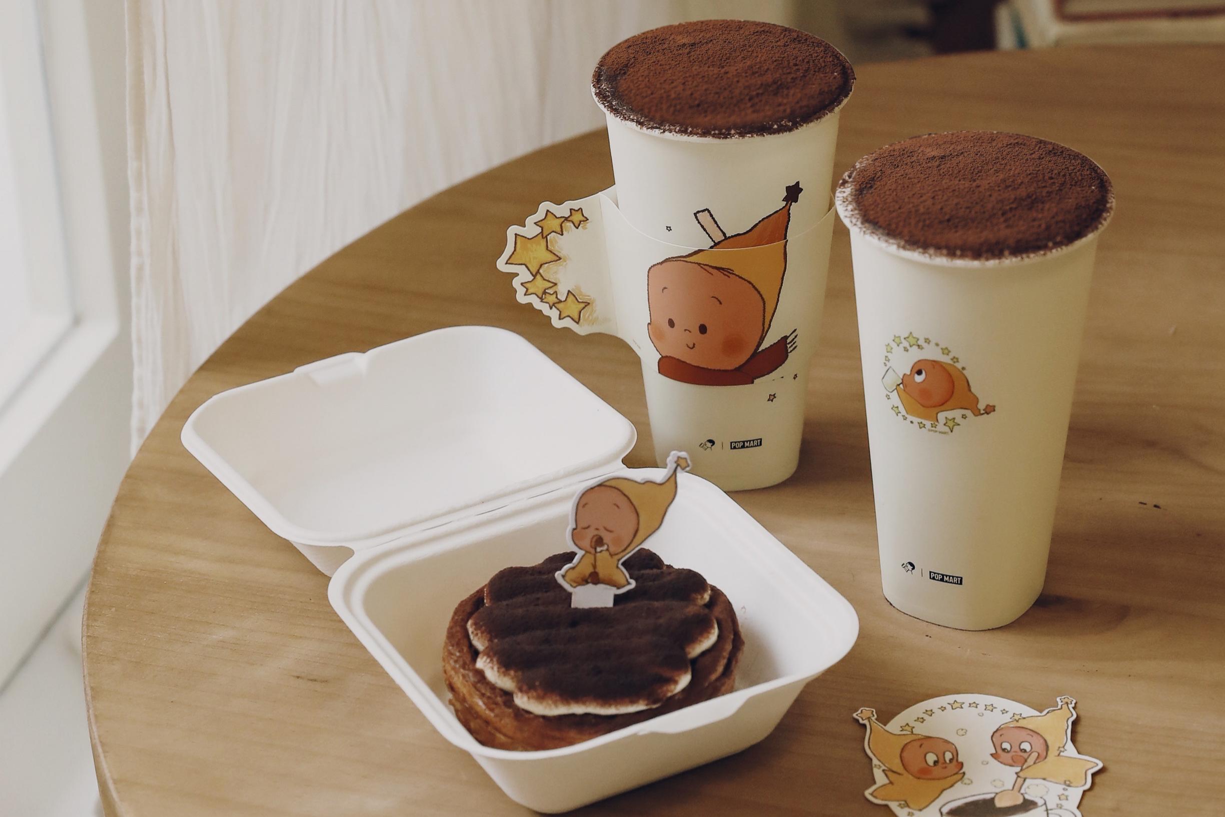 首先,联名以内容为核,铺陈沉浸式体验链路。此次合作是喜茶首个全球同步上线的IP联名,从预热阶段便暗藏巧思——门店摆放星星人剪影立牌的“留白式预告”,引发社交平台热议与猜测,为联名预留了期待缓冲期。产品端,除经典烤黑糖波波牛乳系列,全球同步上新的“提拉米苏·英红”(部分地区为嫣红)以大众熟知的甜品为灵感,将茶饮打造成承载情绪的容器,搭配点缀星星人形象的联名可颂挞,实现味觉与视觉的双重治愈。更难得的是星星人创作者大欣的深度参与,围绕“勇气、思念与爱”的内核,设计出模仿阿喜喝茶、围红围巾等贴合饮用场景的形象,让IP不再是简单装饰,而是融入产品、包材与主题门店的情感符号。