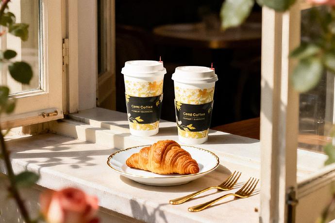 首先,产品即媒介,用高定美学打通视觉与味觉。库迪深知“产品是最佳触点”,此次联名精准选中香奈儿设计师,以维多利亚欧洲花园为灵感,未简单复刻古典符号,而是将花园细节拆解融入纸杯、纸袋。“暖黄昏”与“星空夜”双版本承包全天浪漫,锡兰金杯的鎏金质感随手拍都出片,让咖啡杯变身时尚单品。口味上更深度呼应主题,甄选斯里兰卡乌瓦产区红茶,鲜泡茶汤泛着琥珀光泽,热饮暖乎不腻口,从视觉到味觉,全方位营造欧洲贵族饮品的仪式感,精准踩中年轻人对“氛围感”与“老钱风”的追求。